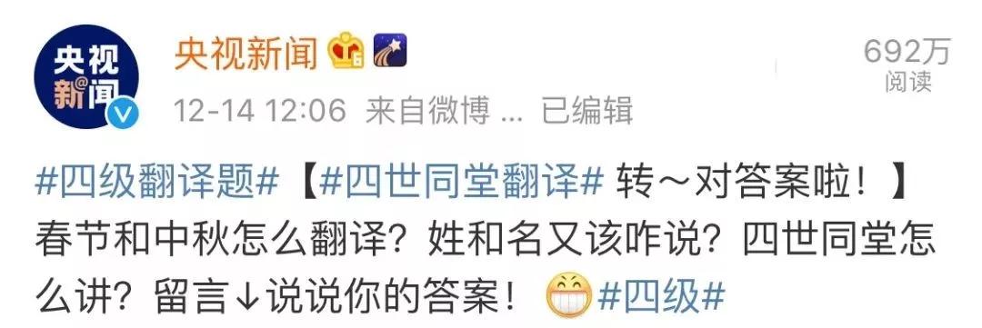 原標題:英語四六級上熱搜 四世同堂翻譯難倒了大家