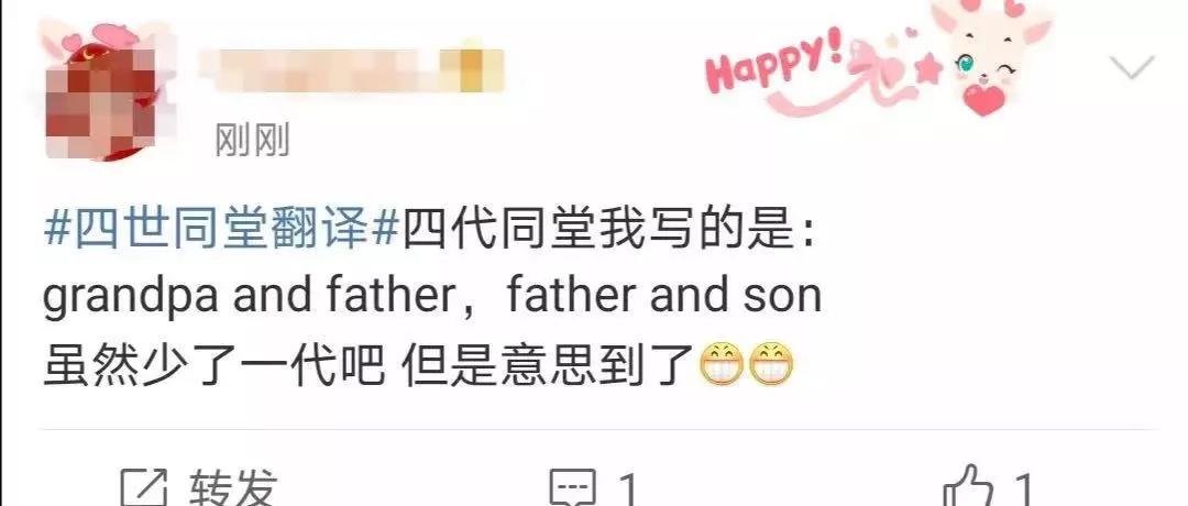 比如這次,一個#四世同堂翻譯#難倒了大家。
