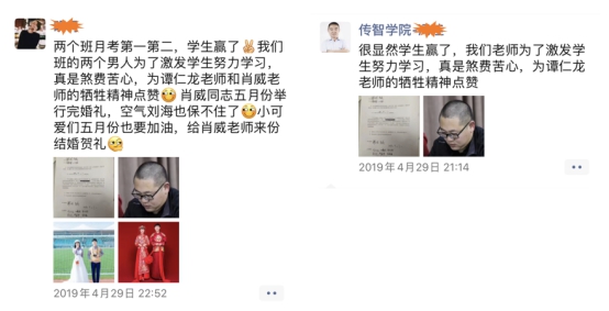 譚仁龍和肖威老師利用“賭約”,不僅提升了學生的學習積極性,看到自己潛力的同學也對學習更加有了信心。